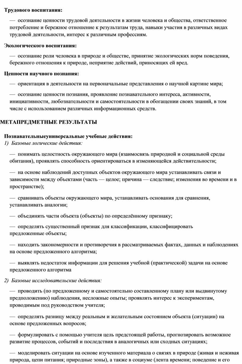 — формирование целостного взгляда на мир, осознание места в нём человека на основе целостного взгляда на окружающий мир (природную и социальную среду обитания); освоение естественнонаучных, обществоведческих, нравственно этических понятий, представленных в содержании данного учебного предмета;