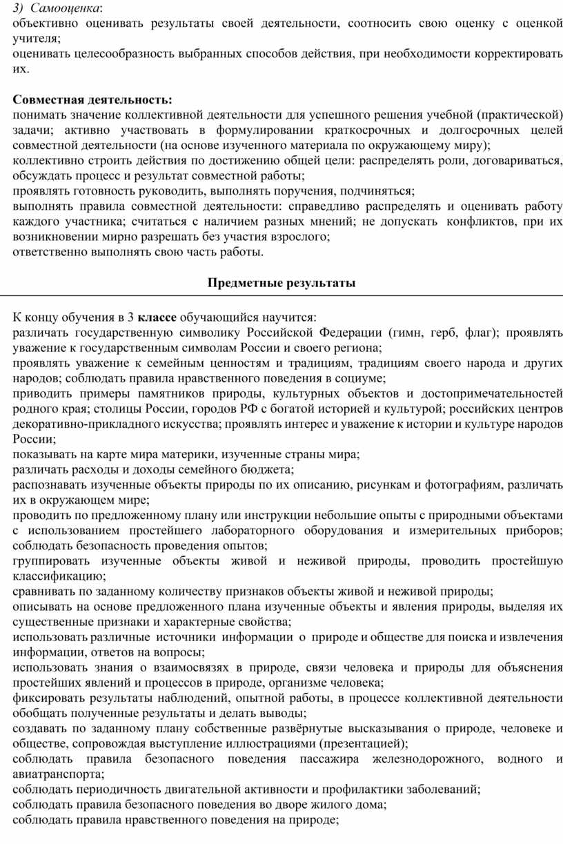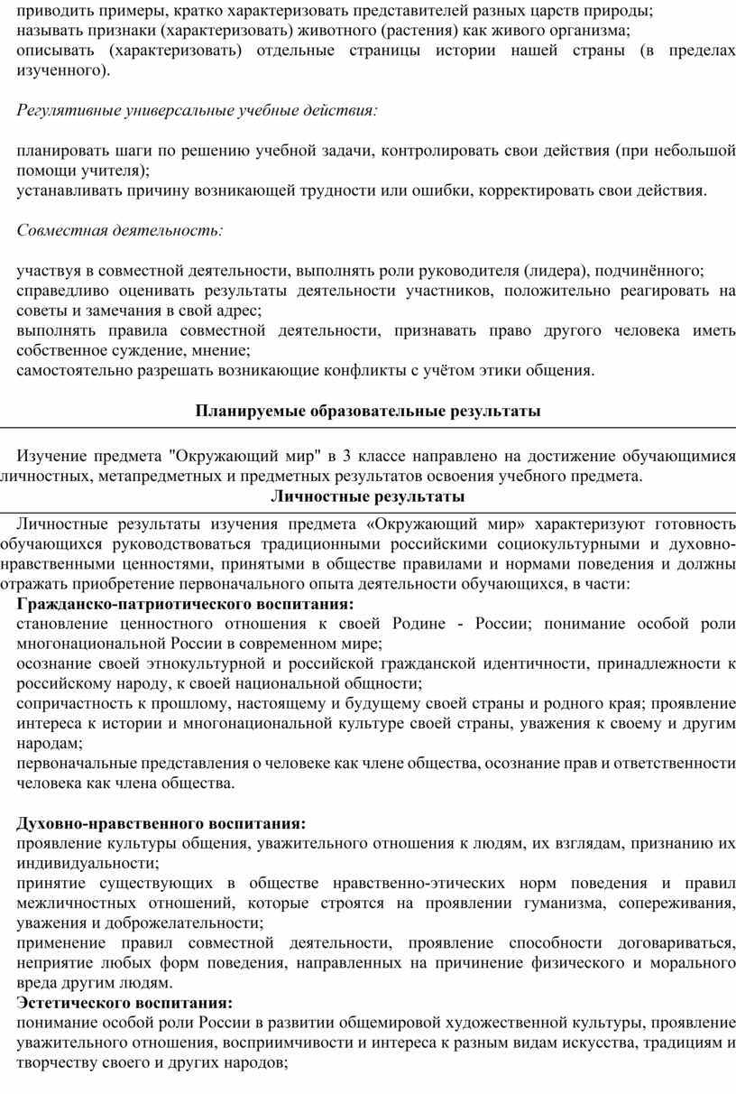 Рабочая программа по предмету «Окружающий мир» на уровне 3 класса начального общего образования составлена на основе требований к результатам освоения основной образовательной программы начального общего образования, представленных в Федеральном государственном образовательном стандарте начального общего образования, Примерной программы воспитания, а также с учётом историко-культурного стандарта.