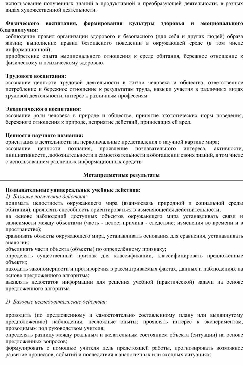 1. формирование целостного взгляда на мир, осознание места в нём человека на основе целостного взгляда на окружающий мир (природную и социальную среду обитания); освоение естественнонаучных, обществоведческих, нравственно этических понятий, представленных в содержании данного учебного предмета;