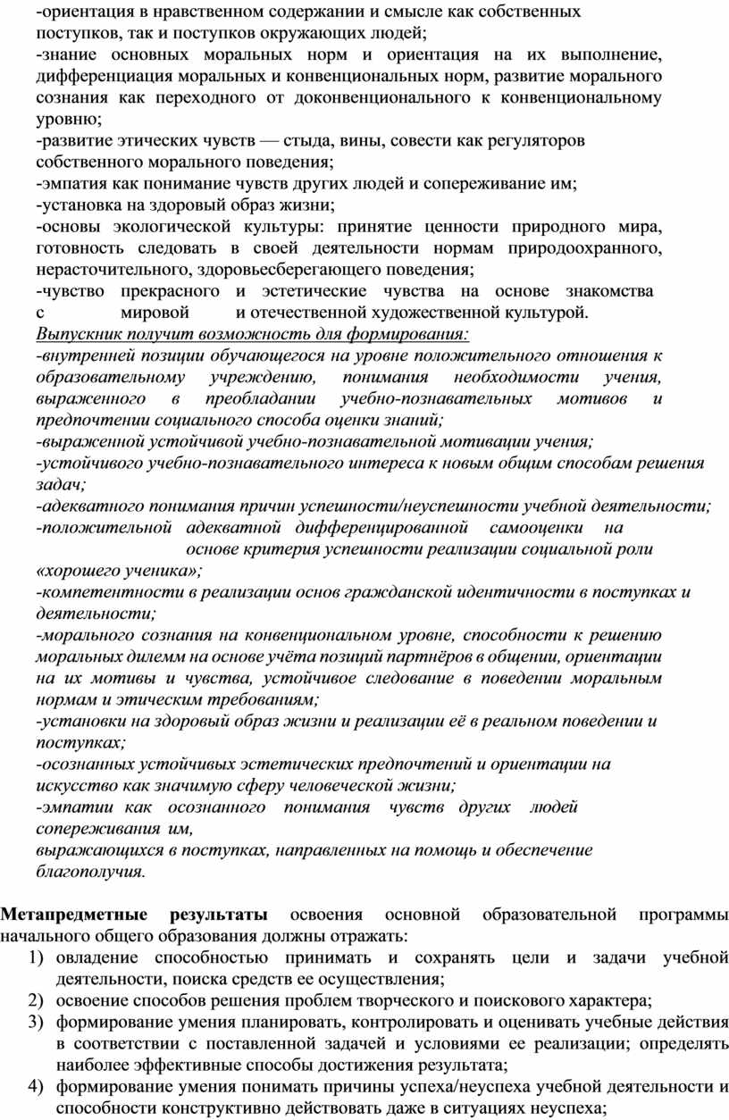 – акцентировать внимание на нравственных аспектах человеческого поведения при изучении гуманитарных предметов на последующих уровнях общего образования.