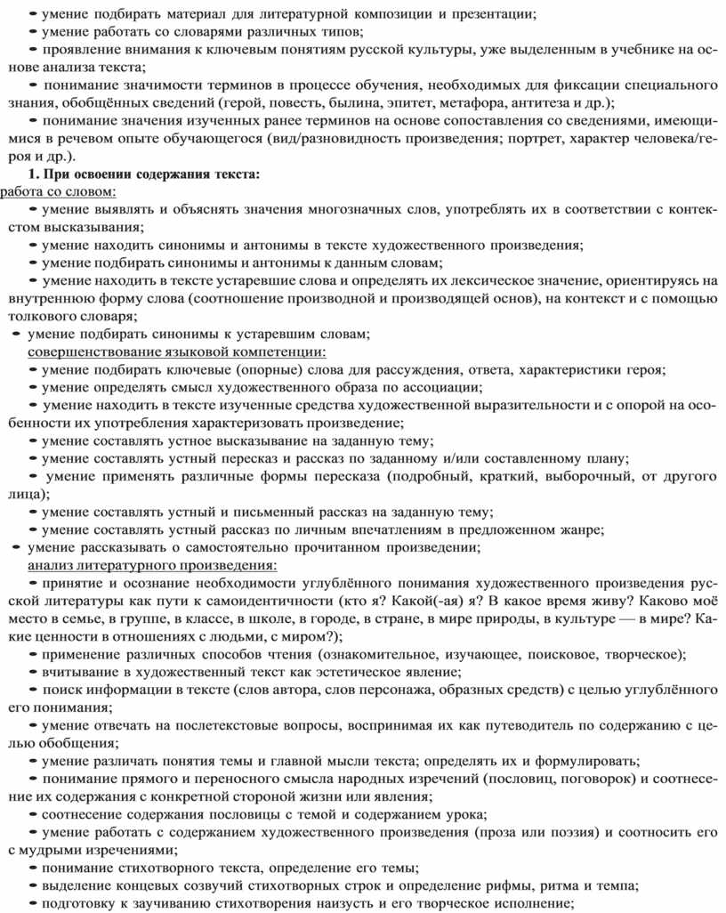 • понимание значения изученных ранее терминов на основе сопоставления со сведениями, имеющи- мися в речевом опыте обучающегося (вид/разновидность произведения; портрет, характер человека/ге- роя и др.).