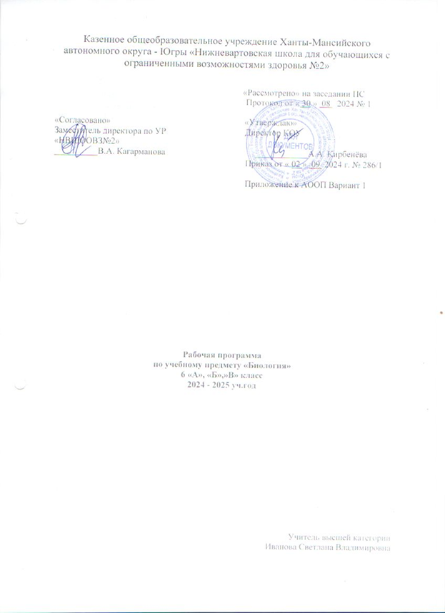 2. Адаптированная основная общеобразовательная программа для обучающихся с лёгкой умственной отсталостью (интеллектуальными нарушениями) для обучающихся 1-12 классов, утверждённая приказом от 02.09.2024г. №286/1 «Об утверждении адаптированных основных общеобразовательных программ, реализуемых в КОУ «НВШООВЗ№2» с 02.09.20024г.