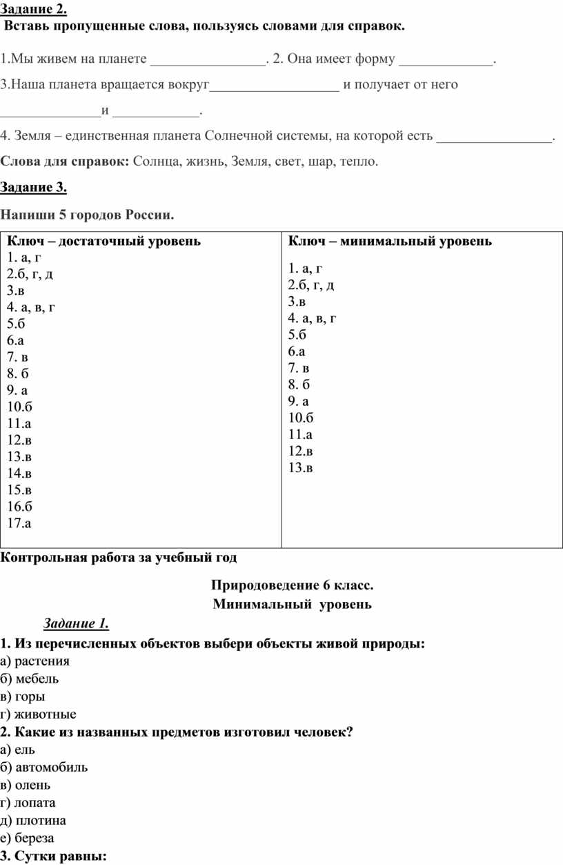 Ключ – минимальный уровень 1. а, г 2.б, г, д 3.в 4. а, в, г 5.б 6.а 7. в 8. б 9. а 10.б 11.а 12.в 13.в