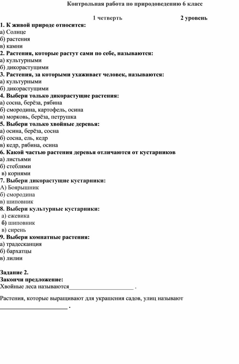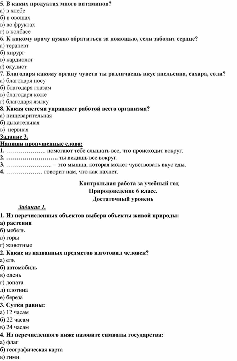 Контрольная работа за учебный год
