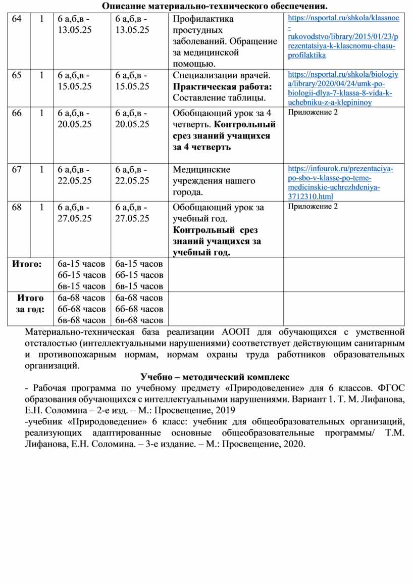Завершают курс обобщающие уроки, которые систематизируют знания о живой и неживой природе, полученные в курсе "Природоведение".