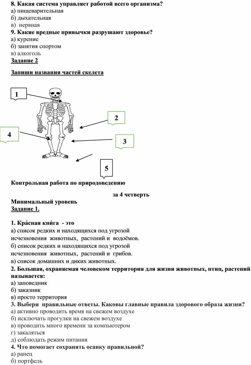 Уметь работать по инструкции. Знать части тела и некоторые органы, как работают некоторые органы. Принципы здорового образа жизни, правила сохранения осанки. Знать основные органы чувств, правила гигиены, соблюдать правила гигиены, объяснять необходимость этого. Уметь оказывать простейшую медицинскую помощь. Выполнять задания в рабочей тетради. |
