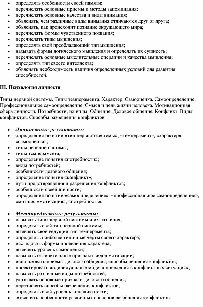 Типы нервной системы. Типы темперамента. Характер. Самооценка. Самоопределение. Профессиональное самоопределение. Смысл и цель жизни человека. Мотивационная сфера личности. Потребности, их виды. Общение. Деловое общение. Конфликт. Виды конфликтов. Способы разрешения конфликтов.
