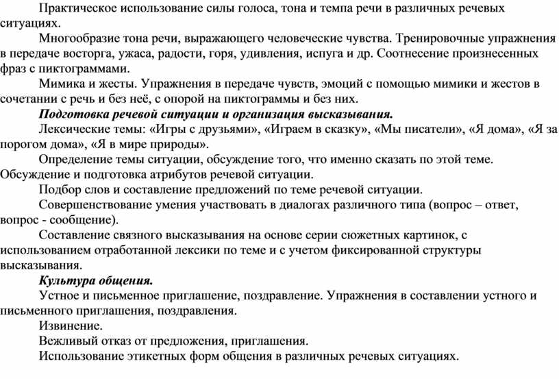 Практическое использование силы голоса, тона и темпа речи в различных речевых ситуациях.
