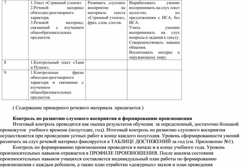 2) формирование и совершенствование слуховой функции на основе различения и воспроизведения знакомого речевого материала (слов, словосочетаний, фраз, тем, текстов);