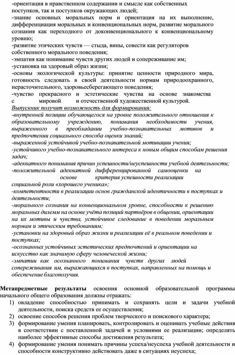 Предметные результаты освоения основной образовательной программы начального общего образования с учетом специфики содержания предметных областей, включающих в себя конкретные учебные предметы, должны отражать: