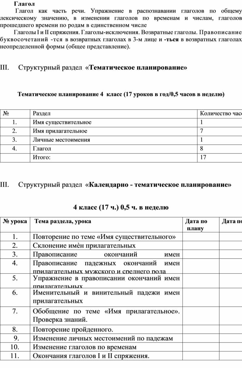 Тематическое планирование 4 класс (17 уроков в год/0,5 часов в неделю)
