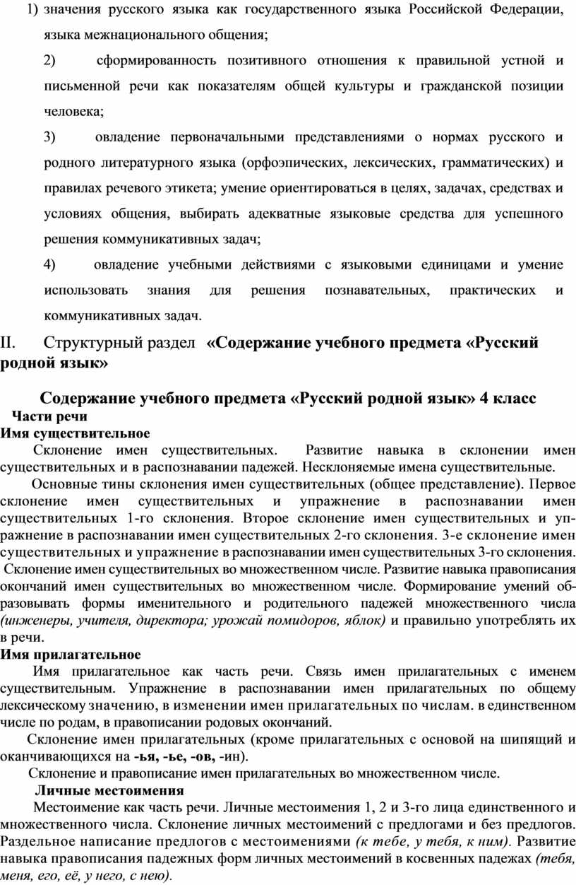 II. Структурный раздел «Содержание учебного предмета «Русский родной язык»