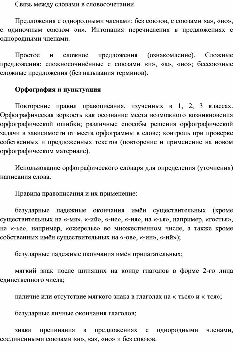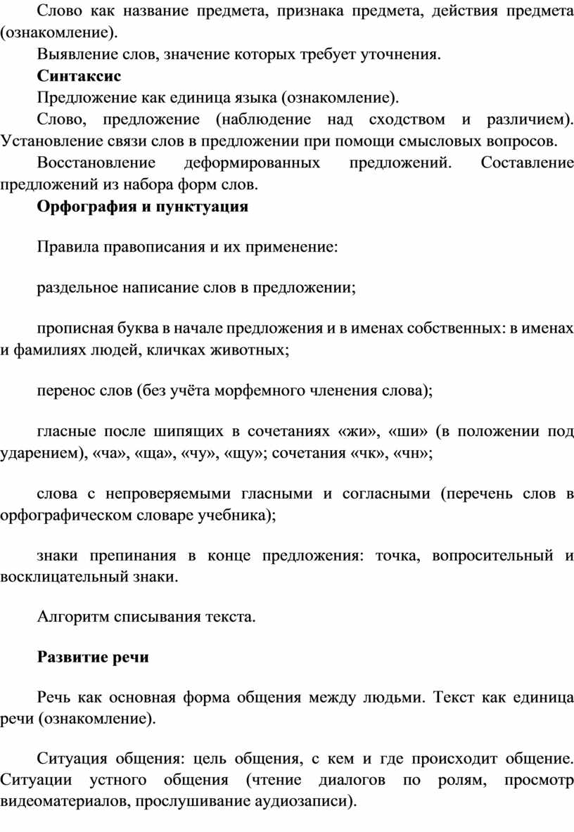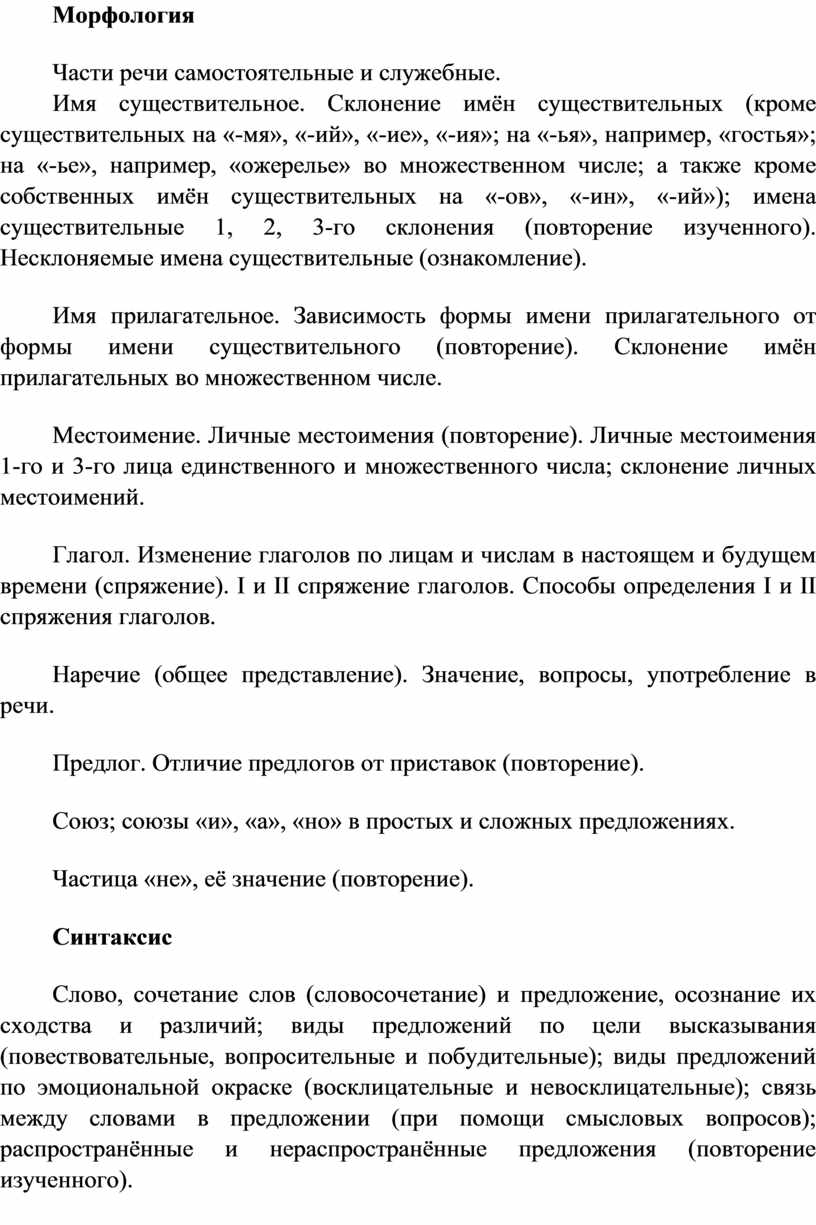 Программа по русскому языку устанавливает распределение учебного материала по классам, основанное на логике развития предметного содержания и учёте психологических и возрастных особенностей обучающихся.