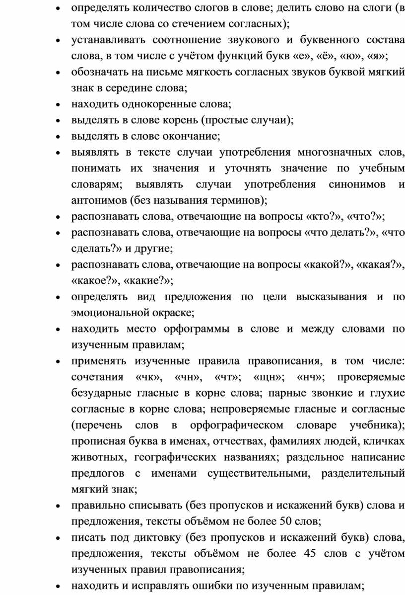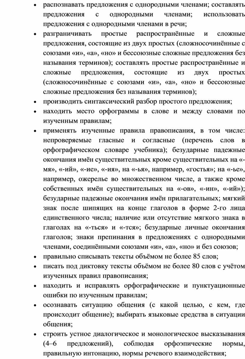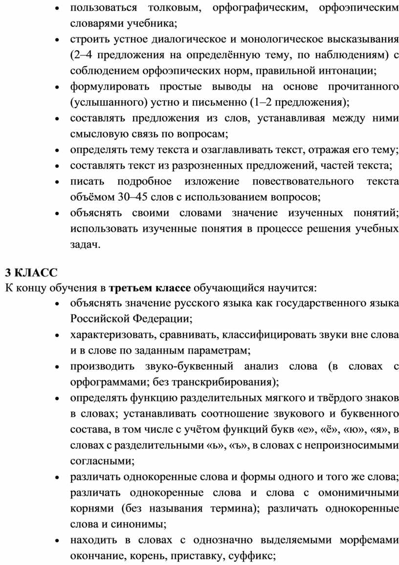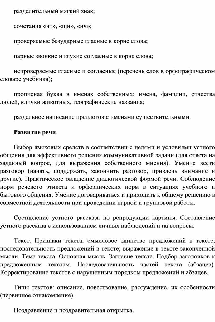 Программа по русскому языку устанавливает распределение учебного материала по классам, основанное на логике развития предметного содержания и учёте психологических и возрастных особенностей обучающихся.