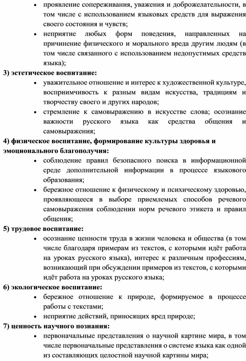 · – приобретение обучающимися первоначальных представлений о многообразии языков и культур на территории Российской Федерации, о языке как одной из главных духовно-нравственных ценностей народа; понимание роли языка как основного средства общения; осознание значения русского языка как государственного языка Российской Федерации; понимание роли русского языка как языка межнационального общения; осознание правильной устной и письменной речи как показателя общей культуры человека;