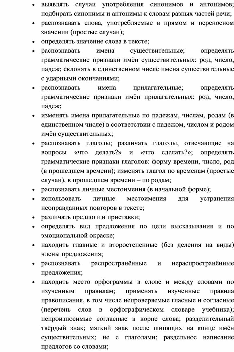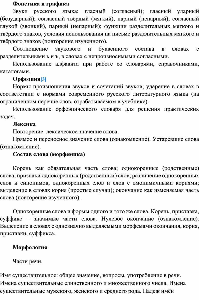 · – овладение первоначальными научными представлениями о системе русского языка: фонетика, графика, лексика, морфемика, морфология и синтаксис; об основных единицах языка, их признаках и особенностях употребления в речи;