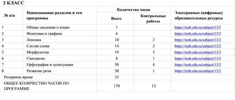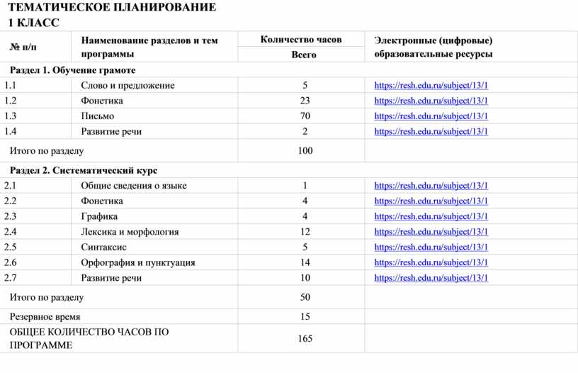 Общее число часов, рекомендованных для изучения русского языка, – 675 (5 часов в неделю в каждом классе): в 1 классе – 165 часов, во 2–4 классах – по 170 часов.