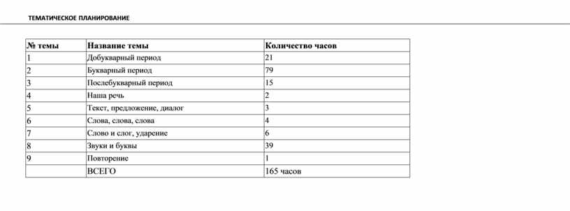 Общее число часов, отведённых на изучение «Русского языка», в 1 классе — 165 ч.