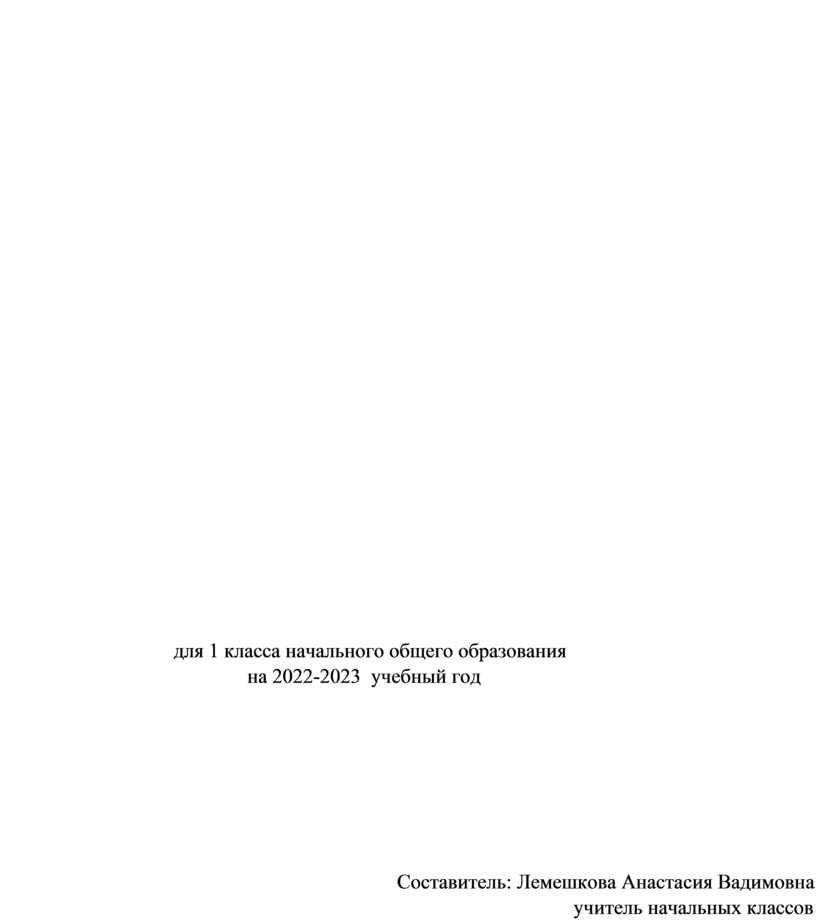 Составитель: Лемешкова Анастасия Вадимовна учитель начальных классов