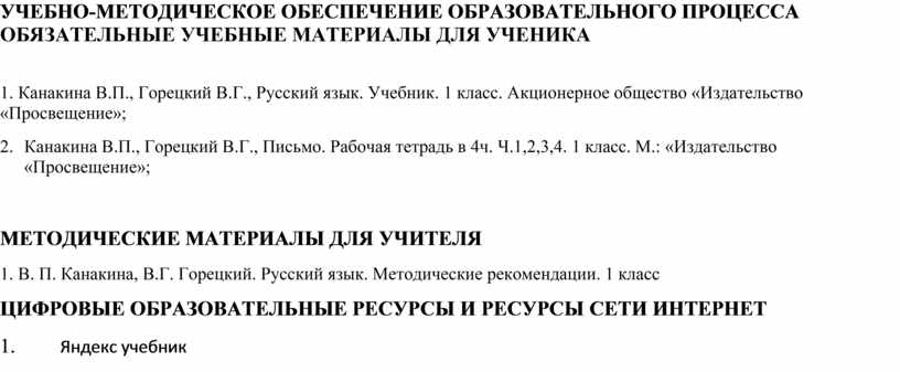 УЧЕБНО-МЕТОДИЧЕСКОЕ ОБЕСПЕЧЕНИЕ ОБРАЗОВАТЕЛЬНОГО ПРОЦЕССА