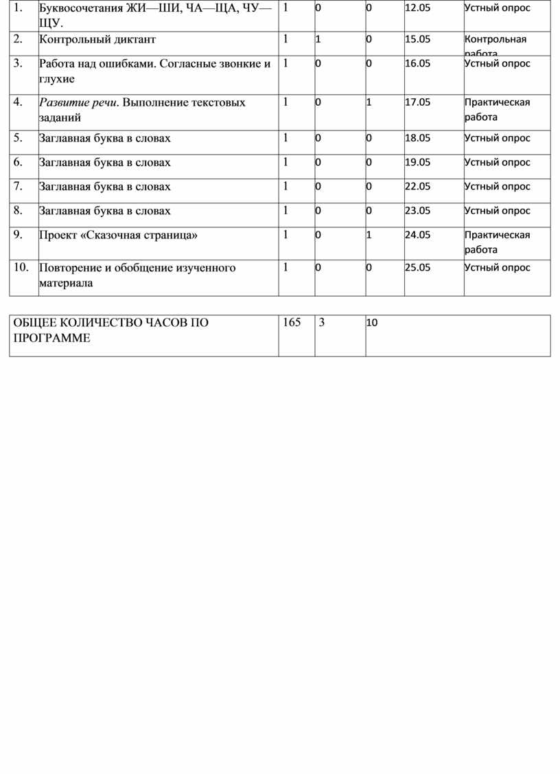 ОБЩЕЕ КОЛИЧЕСТВО ЧАСОВ ПО ПРОГРАММЕ |