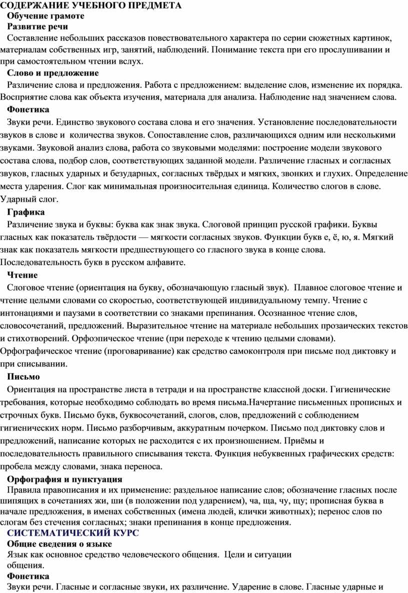 СОДЕРЖАНИЕ УЧЕБНОГО ПРЕДМЕТА