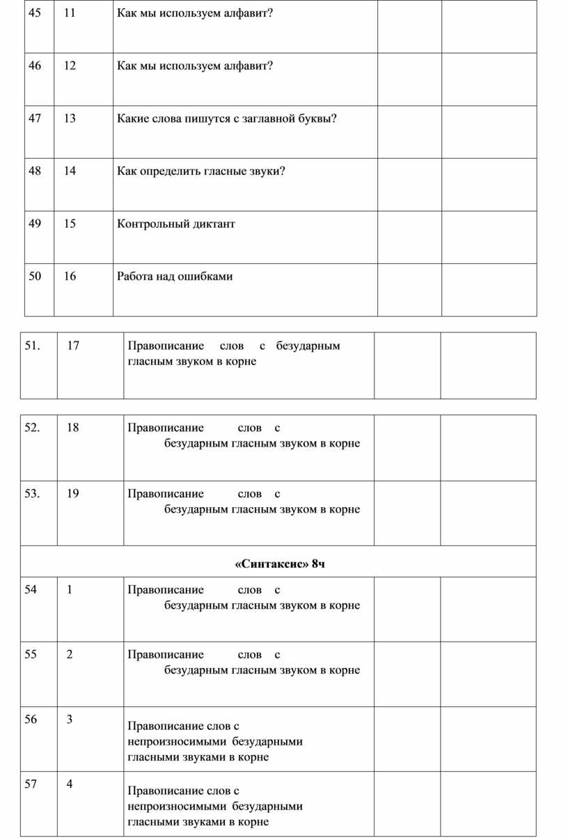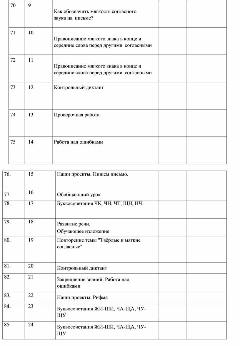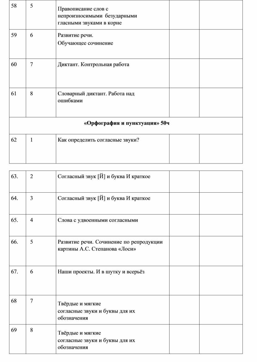 Прописная буква в начале предложения и в именах собственных (имена, фамилии, клички животных); знаки препинания в конце предложения; перенос слов со строки на строку (без учёта морфемного членения слова); гласные после шипящих в сочетаниях жи, ши (в положении под ударением), ча, ща, чу, щу; сочетания чк, чн (повторение правил правописания, изученных в 1 классе). Орфографическая зоркость как осознание места возможного возникновения орфографической ошибки. Понятие орфограммы. Различные способы решения орфографической задачи в зависимости от места орфограммы в слове. Использование орфографического словаря учебника для определения (уточнения) написания слова. Контроль и самоконтроль при проверке собственных и предложенных текстов. Орфографическая зоркость как осознание места возможного возникновения орфографической ошибки. Понятие орфограммы. Различные способы решения орфографической задачи в зависимости от места орфограммы в слове. Использование орфографического словаря учебника для определения (уточнения) написания слова. Контроль и самоконтроль при проверке собственных и предложенных текстов.