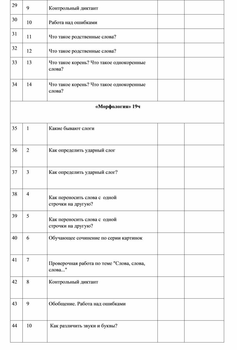 Корень как обязательная часть слова. Однокоренные (родственные) слова. Признаки однокоренных (родственных) слов. Различение однокоренных слов и синонимов, однокоренных слов и слов с омонимичными корнями. Выделение в словах корня (простые случаи). Окончание как изменяемая часть слова. Изменение формы слова с помощью окончания. Различение изменяемых и неизменяемых слов. Суффикс как часть слова (наблюдение). Приставка как часть слова (наблюдение).