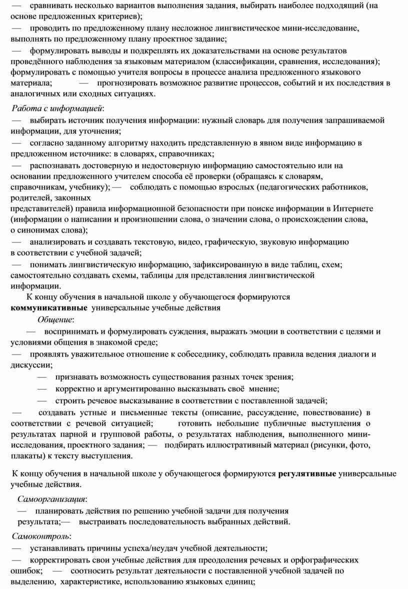 В начальной школе изучение русского языка имеет особое значение в развитии младшего школьника. Приобретённые им знания, опыт выполнения предметных и универсальных действий на материале русского языка станут фундаментом обучения в основном звене школы, а также будут востребованы в жизни.