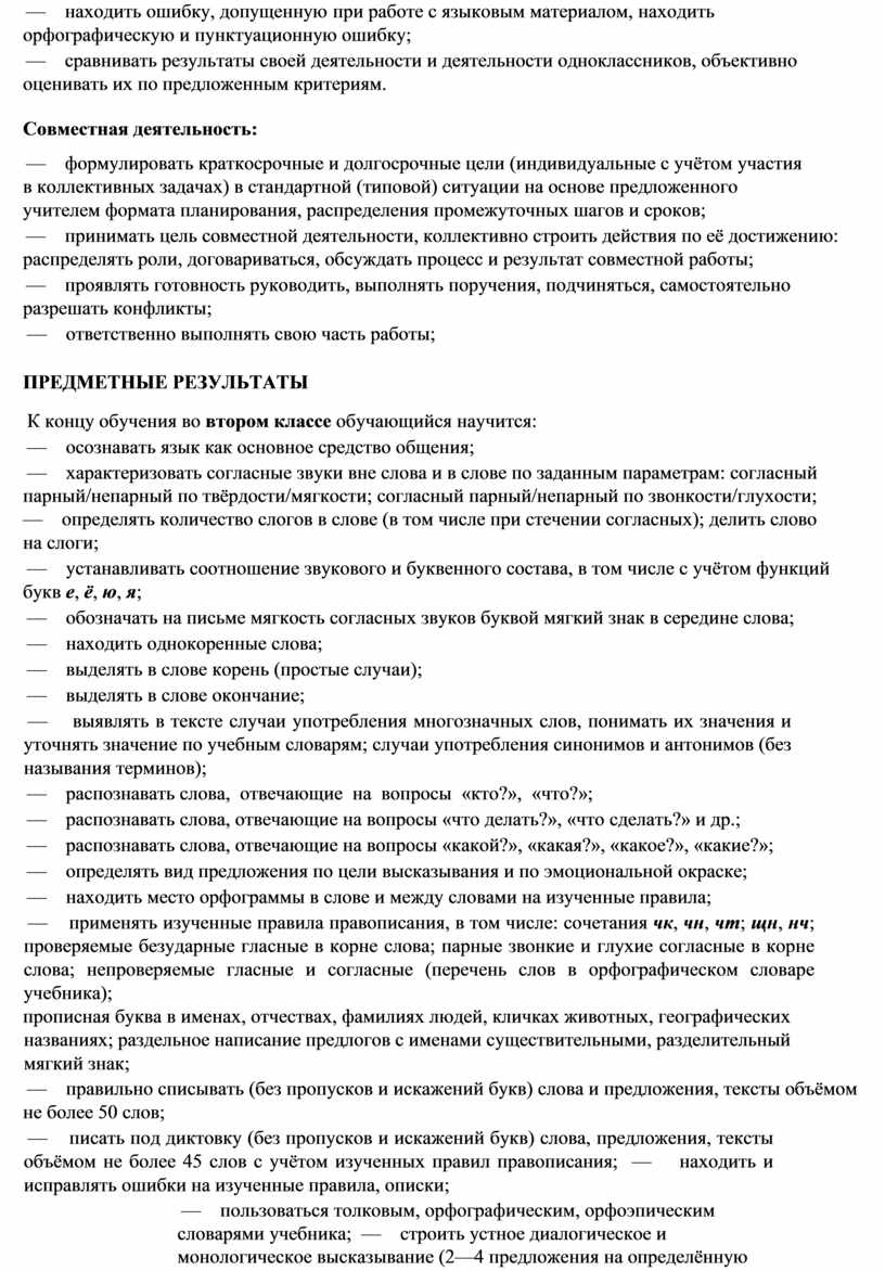 Изучение русского языка во 2 классе направлено на достижение обучающимися личностных, метапредметных и предметных результатов освоения учебного предмета.