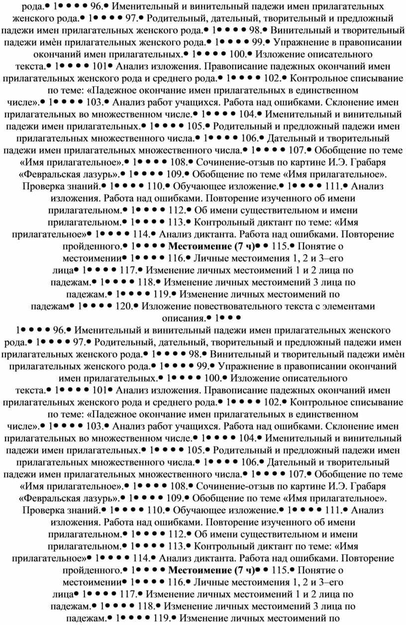 Анализ изложения. Правописание падежных окончаний имен прилагательных женского рода и среднего рода. |