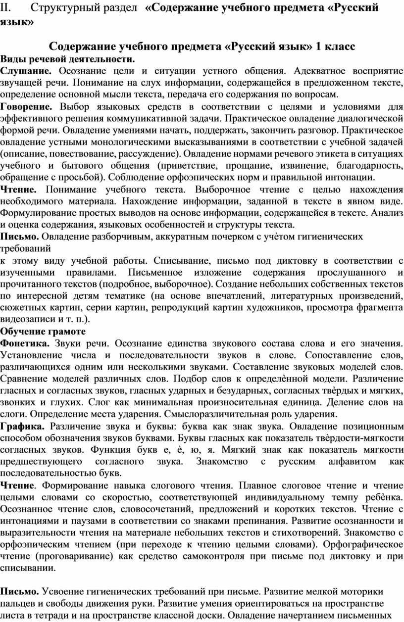 I. Структурный раздел