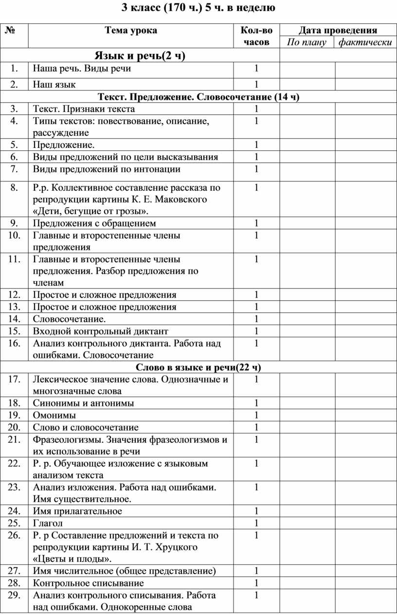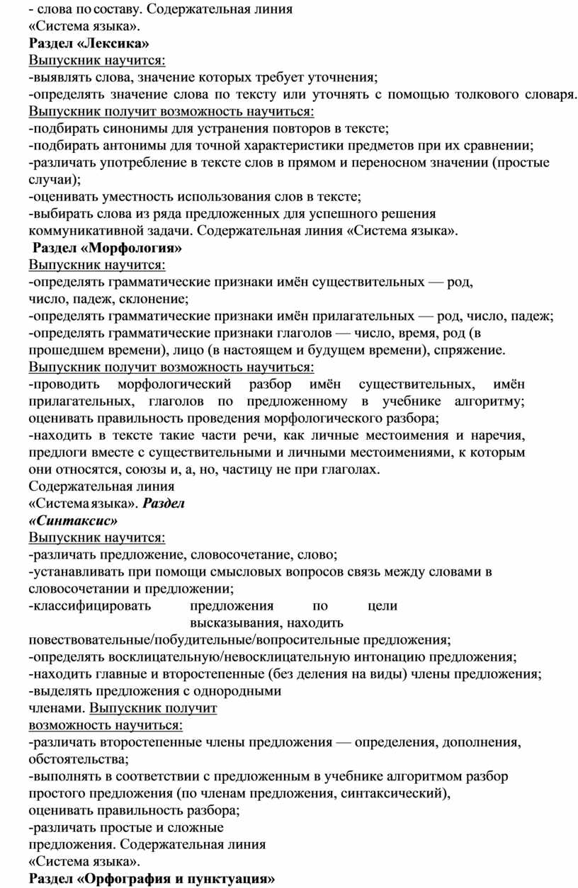 Содержательная линия «Система языка».