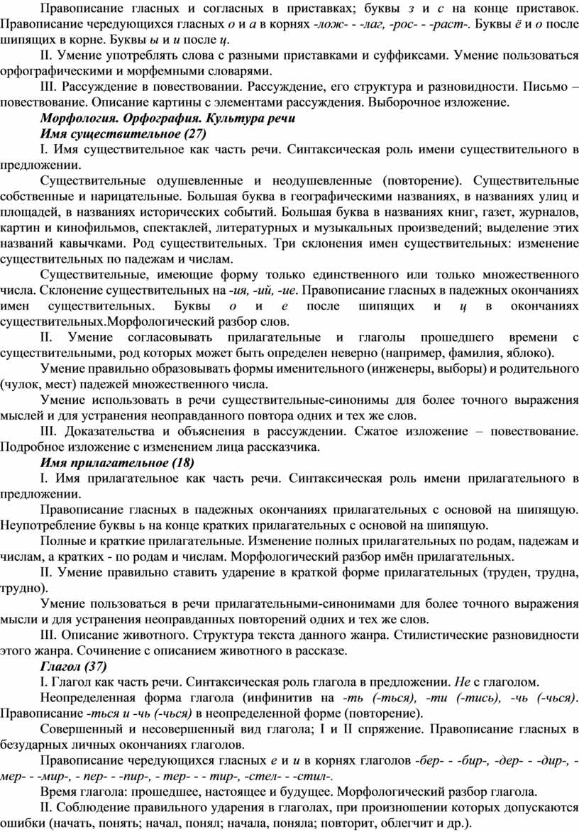 по орфографии: понимать значение письма и правописания для жизни людей; замечать орфограммы корня и дифференцировать их; владеть правилами обозначения на письме проверяемых и не проверяемых произношением гласных и согласных (по списку); о -ѐ после шипящих в корне, чередующихся а-о, е -и в корнях типа -раст- -рос-, -лаг- - лож-, -мер- - мир-, -тер- -тир-; знать неизменяемые приставки (в-, на-, с- и т.д.), приставки на з и с (раз- - рас-; из- - ис - и др.); знать смешиваемые на письме безударные окончания существительных, прилагательных и глаголов, обнаруживать их в тексте и владеть способом определения верного написания; безошибочно писать буквенные сочетания жи -ши, ча -ща, чу -щу; -чк-,-чн,- нч-, рщ-; верно употреблять разделительные ъ и ь после шипящих в конце существительных и глаголов, не с глаголами.