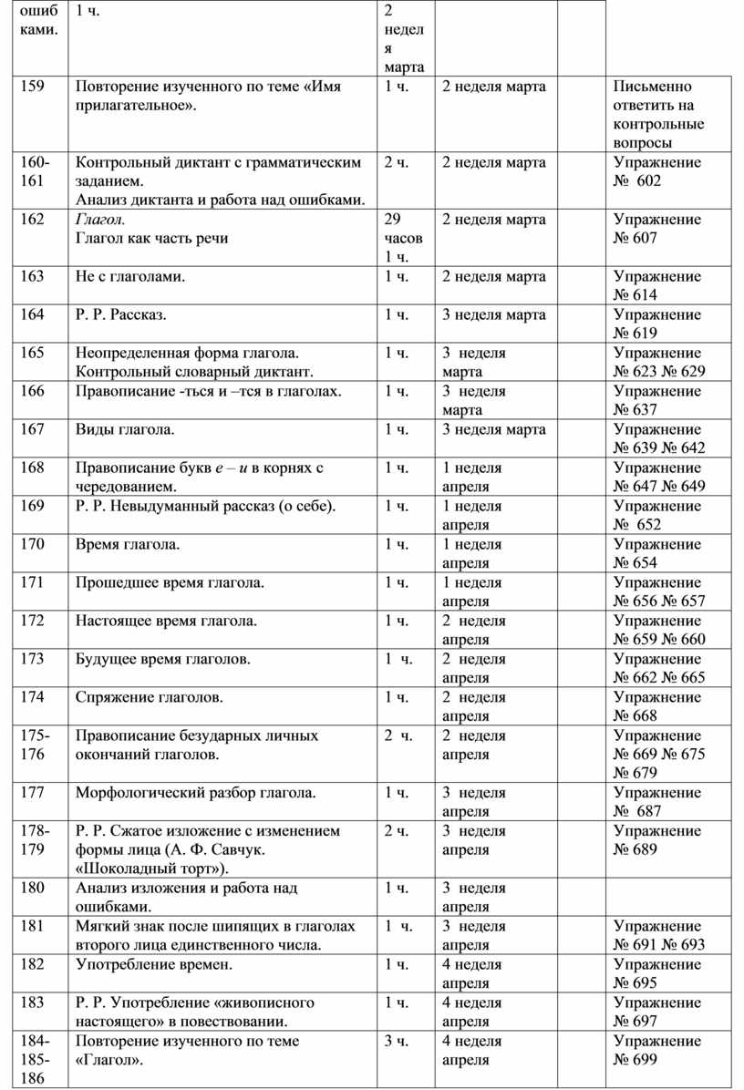 Глагол: лицо, время, число, род (в прошедшем времени); правописание гласных в личных окончаниях наиболее употребительных глаголов 1 и 2 спряжения; буква ь во 2-м лице единственного числа глаголов. Правописание тся и ться; раздельное написание не с глаголами.