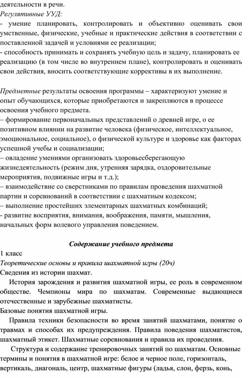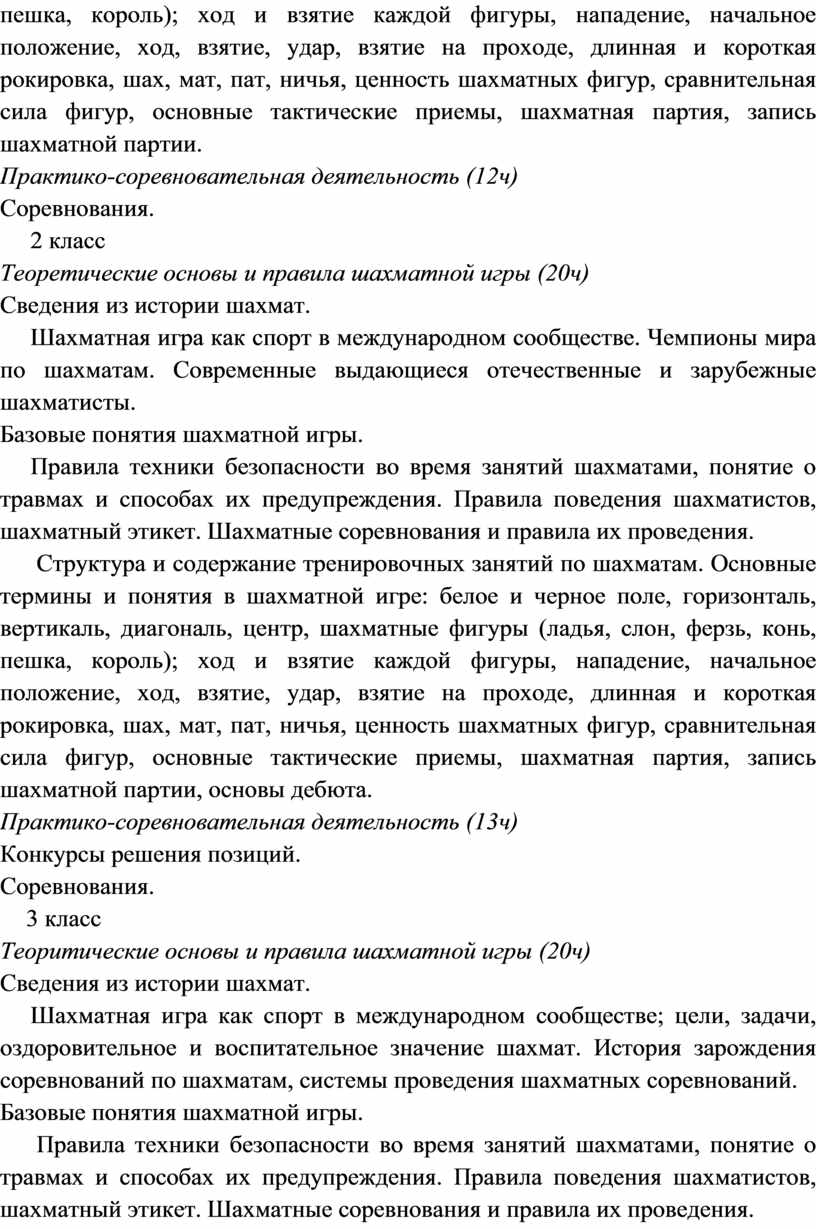Рабочая программа курса «Шахматы в школе» для 1-4 классов составлена в соответствии с нормативными документами: