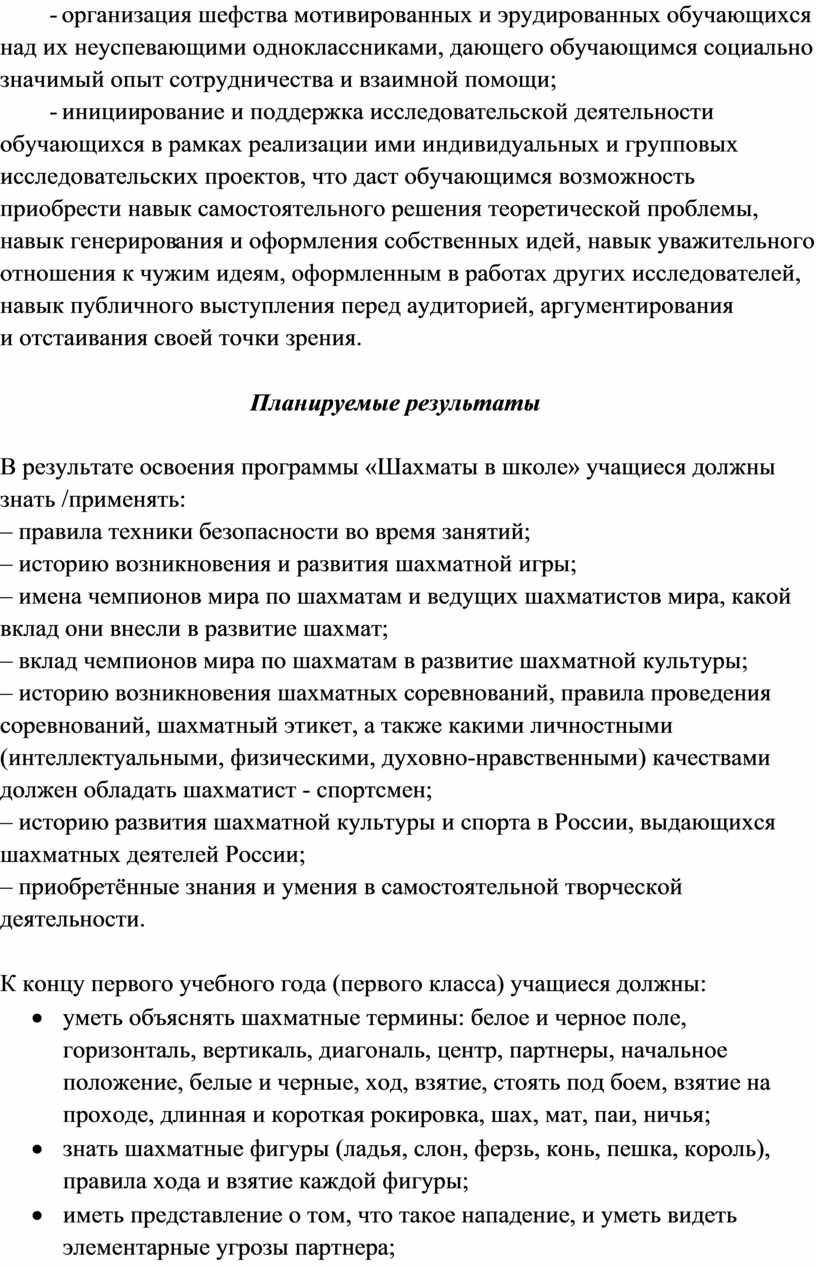 3. Программы к завершённой предметной линии учебников «Шахматы в школе» для 1-4 классов под редакцией Е.А. Прудниковой, Е.И. Волковой.