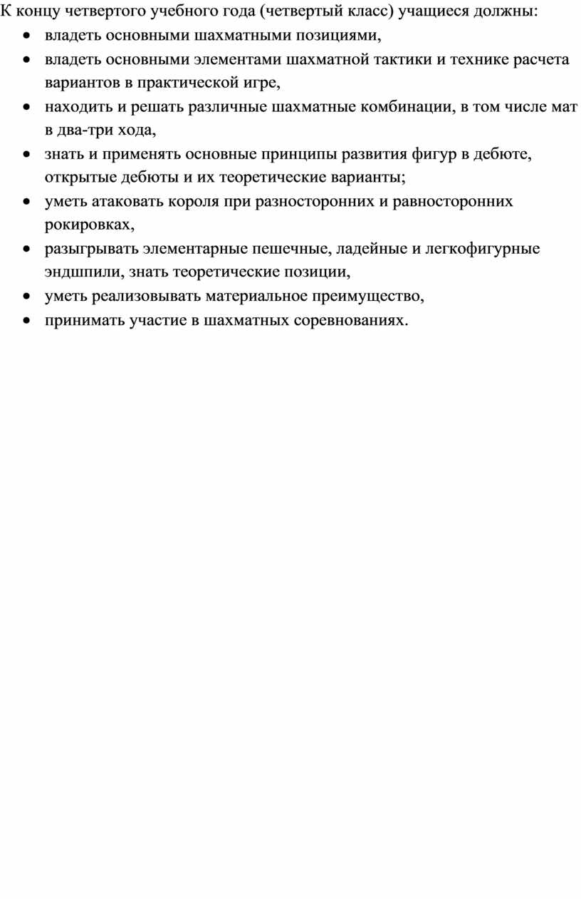 К концу четвертого учебного года (четвертый класс) учащиеся должны: