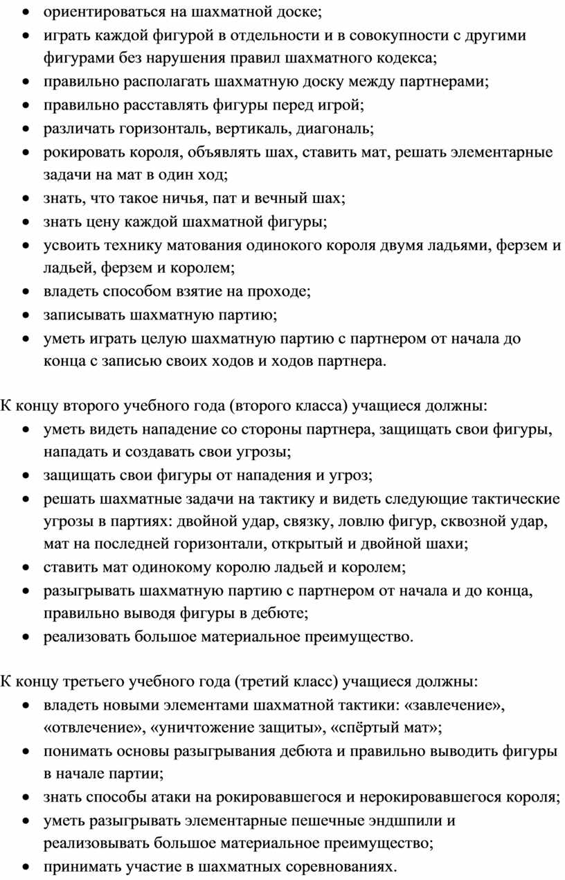 · уметь играть целую шахматную партию с партнером от начала до конца с записью своих ходов и ходов партнера.