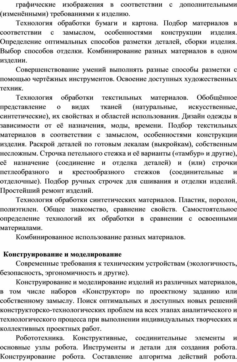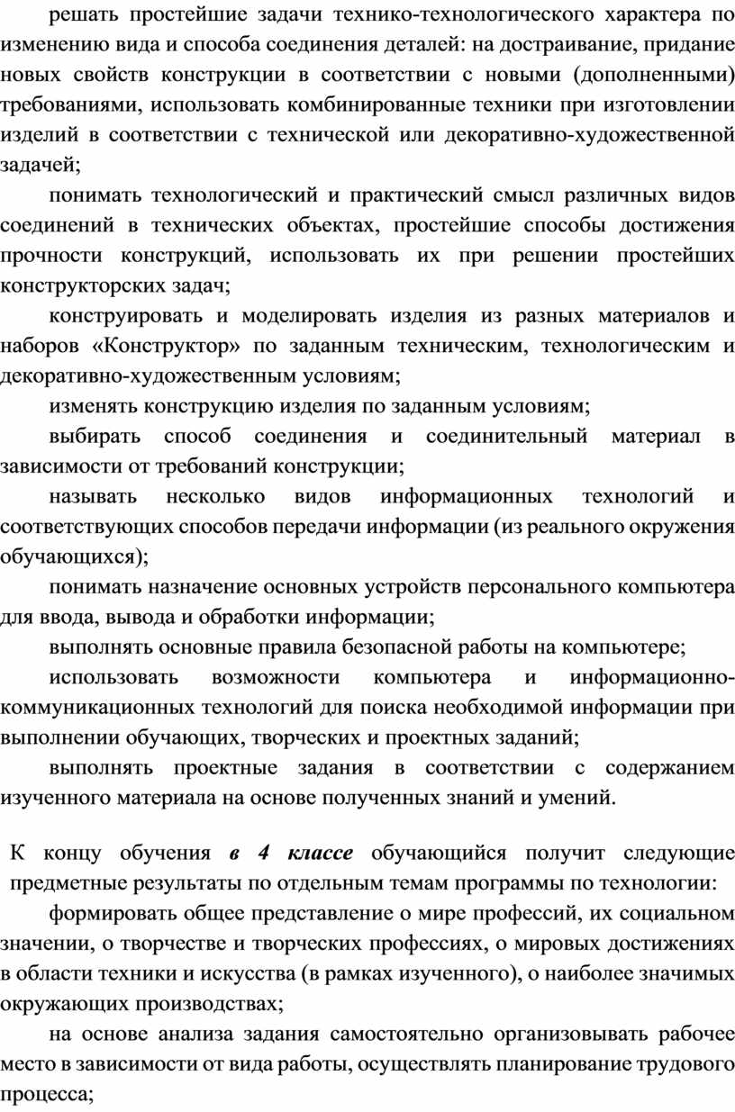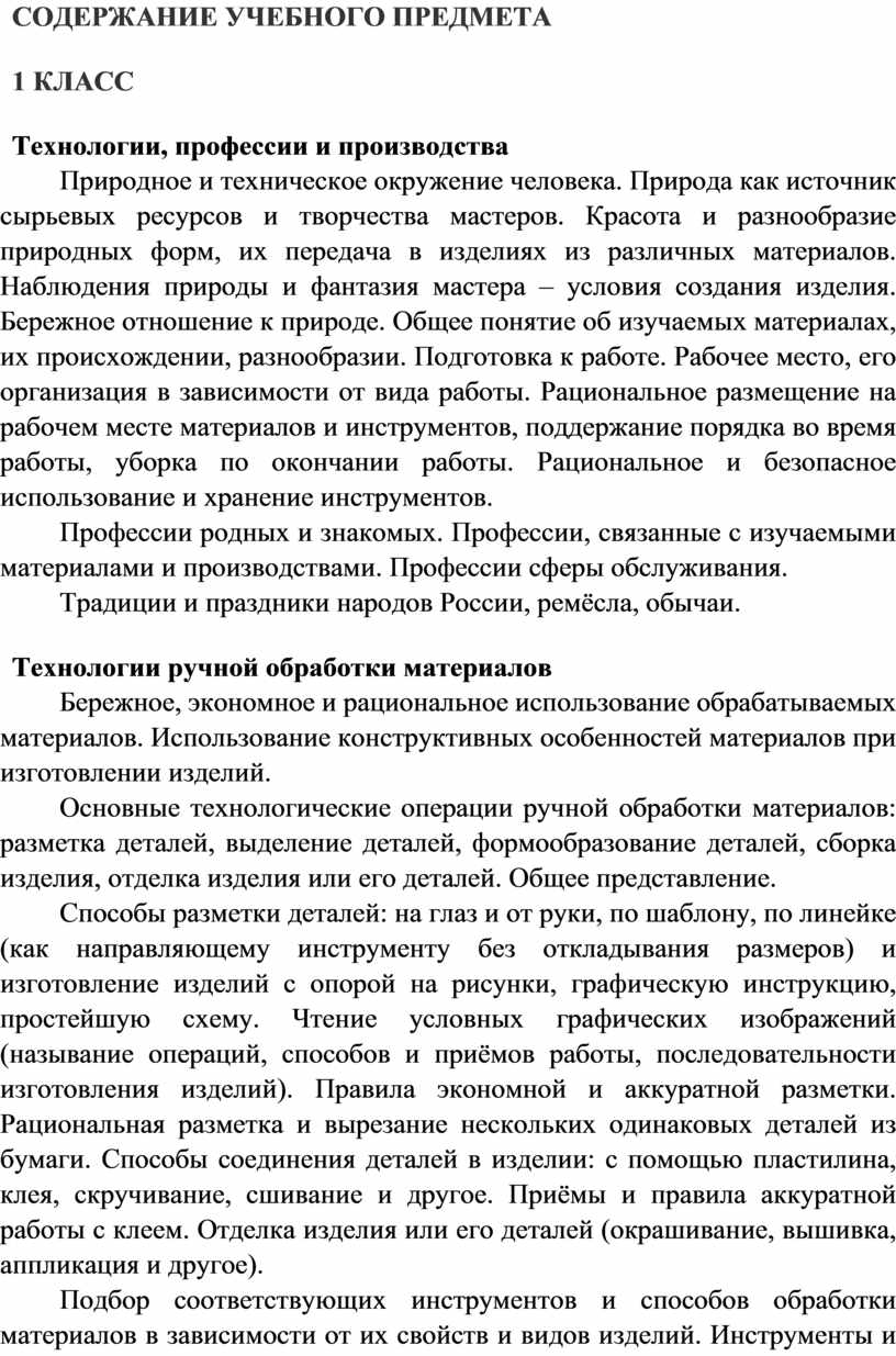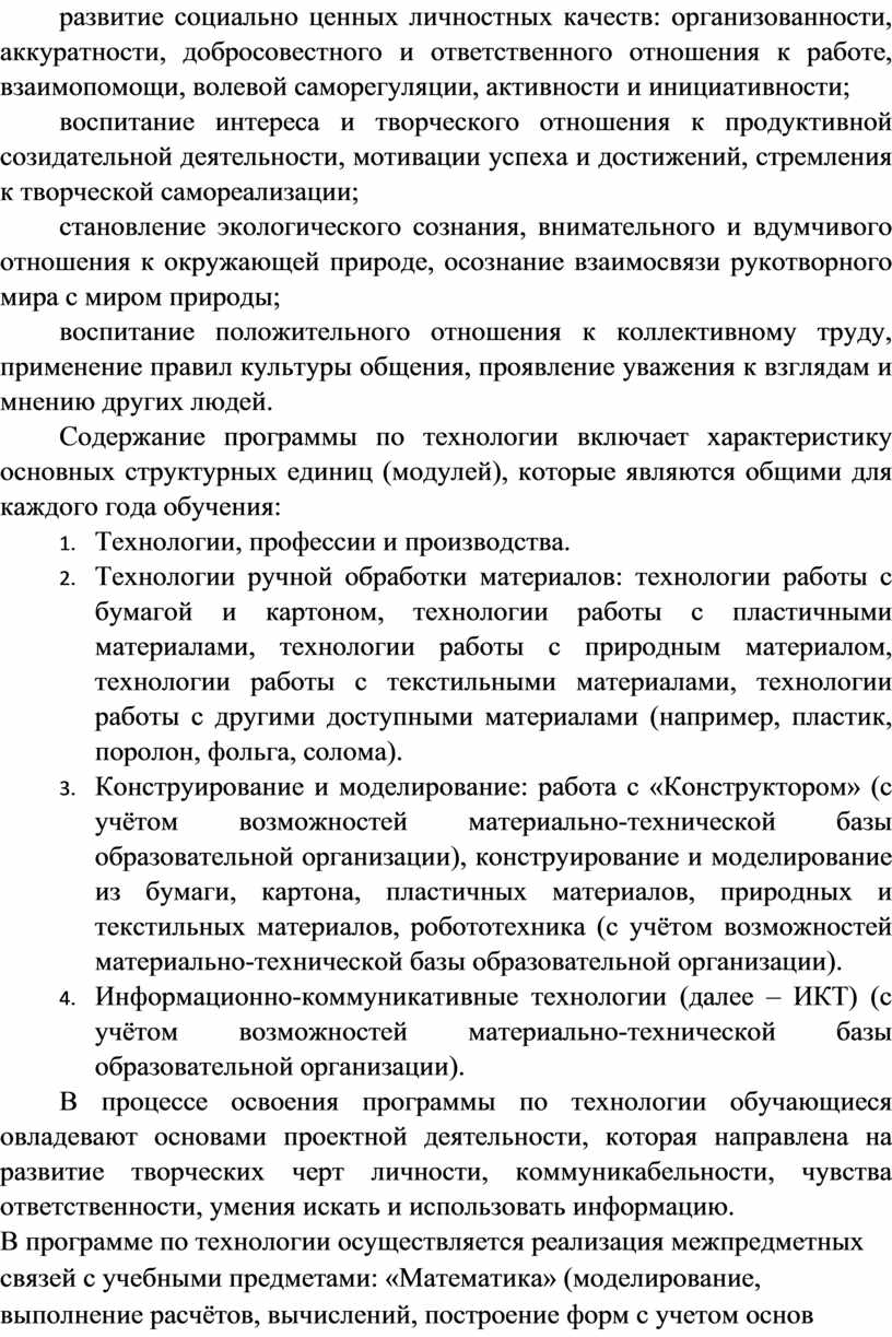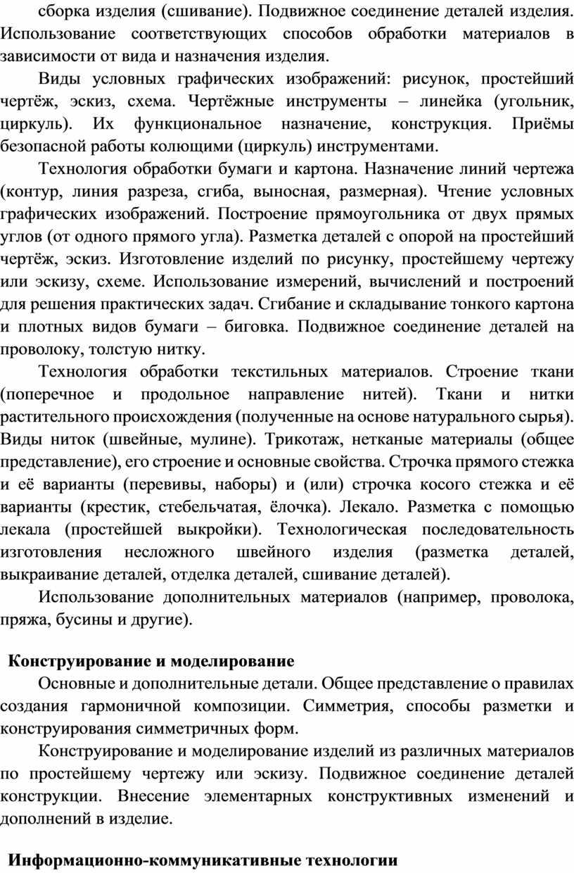 Содержание программы по технологии включает характеристику основных структурных единиц (модулей), которые являются общими для каждого года обучения: