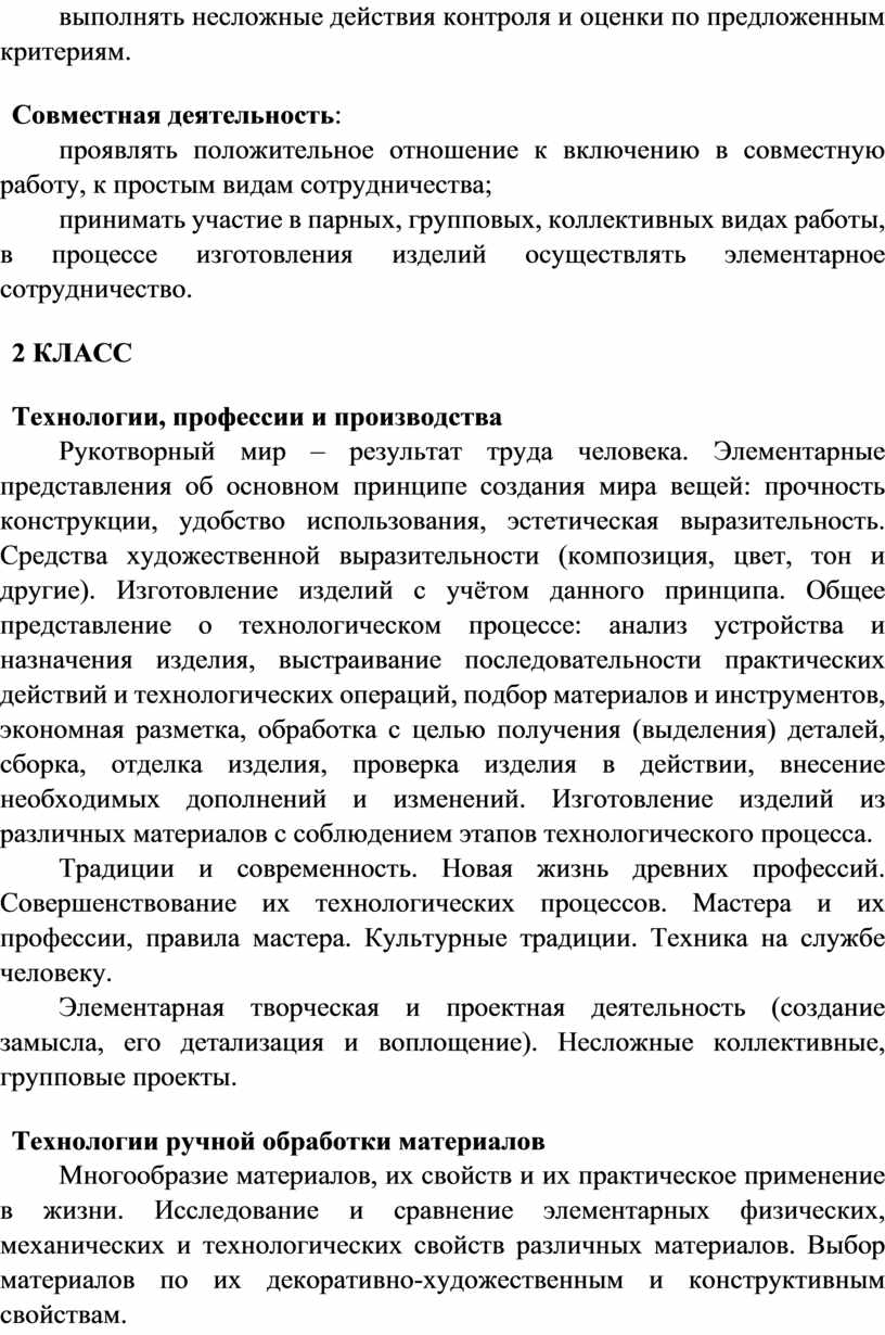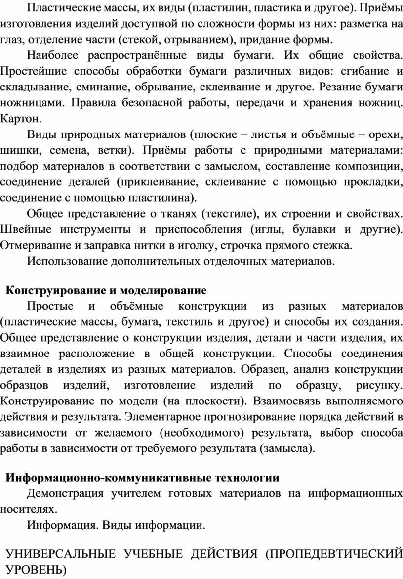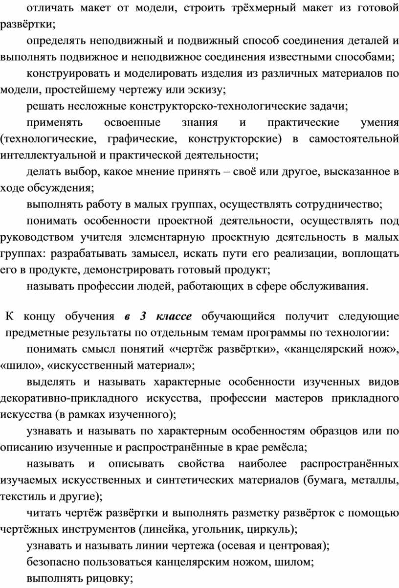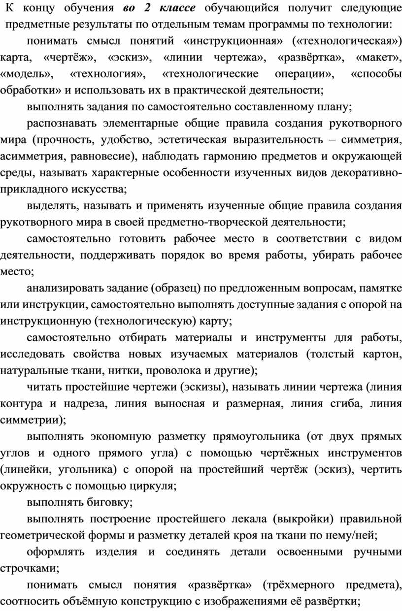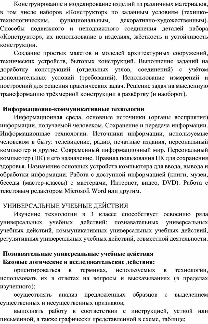 Содержание программы по технологии включает характеристику основных структурных единиц (модулей), которые являются общими для каждого года обучения: