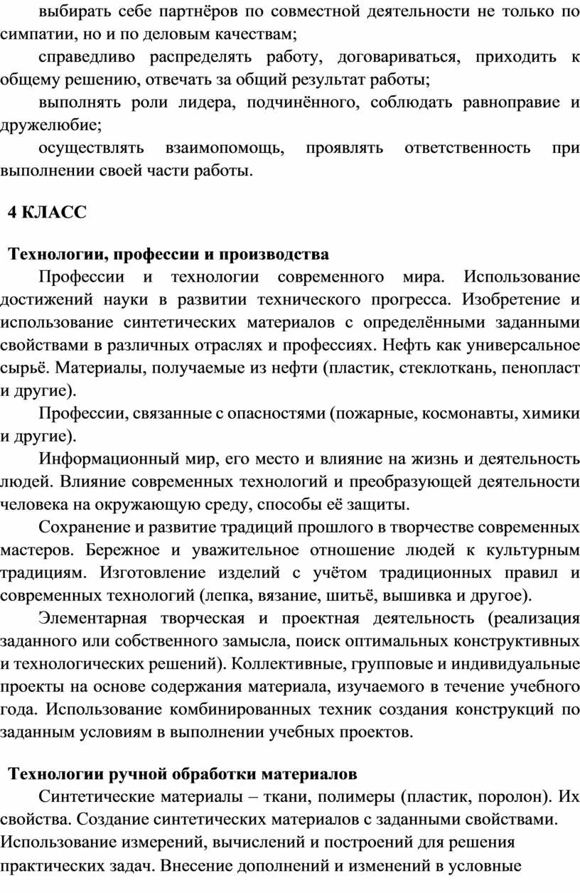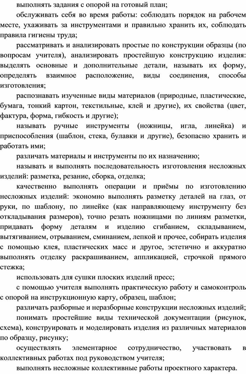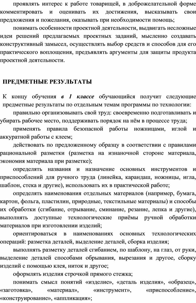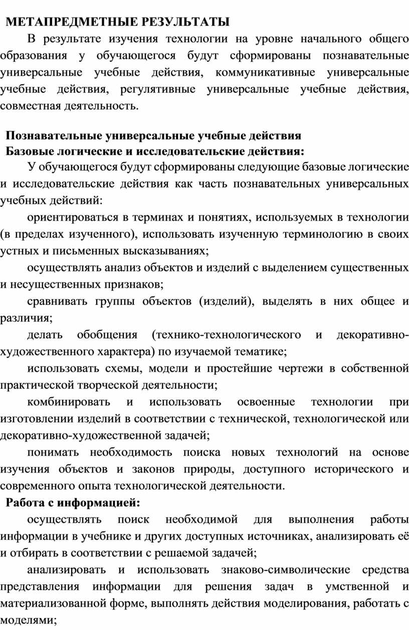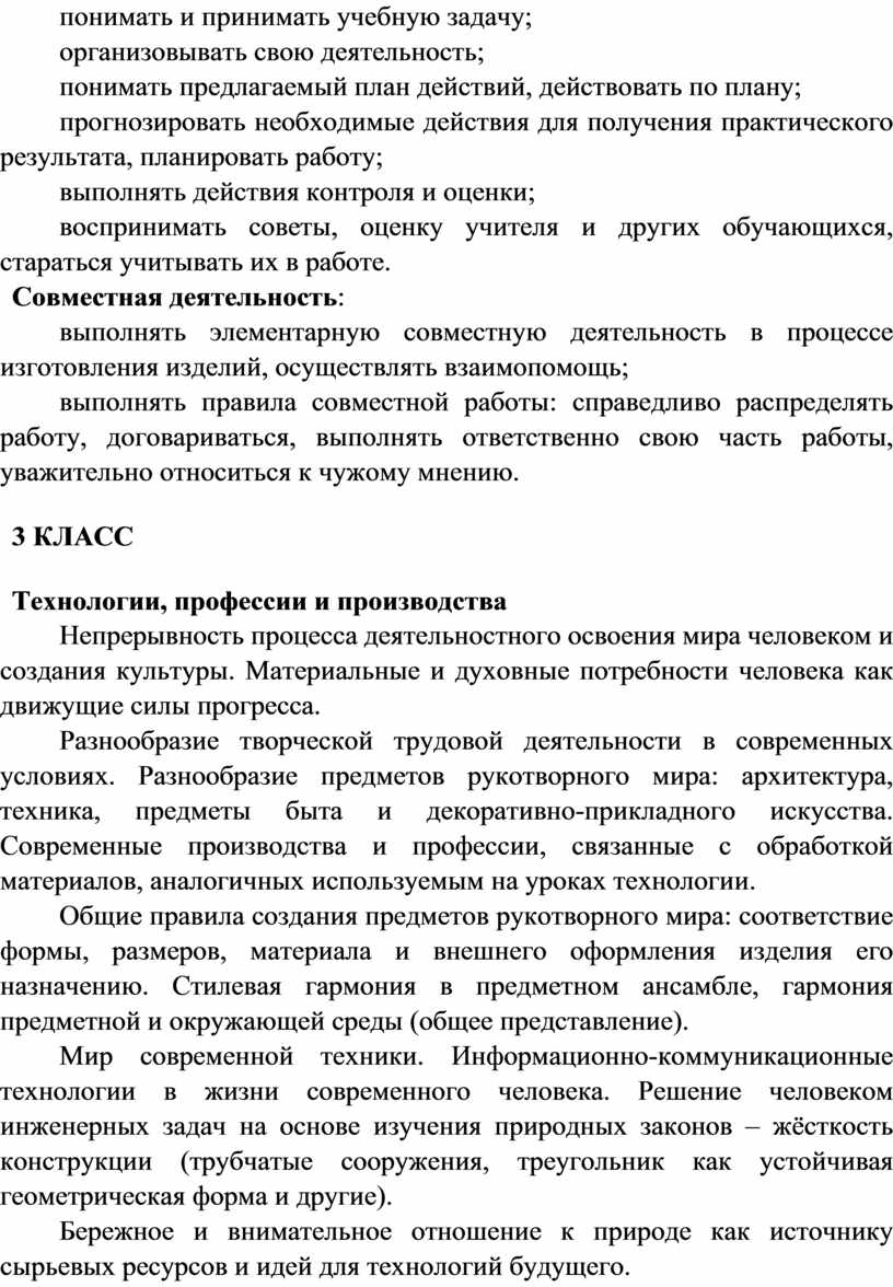 Содержание программы по технологии включает характеристику основных структурных единиц (модулей), которые являются общими для каждого года обучения: