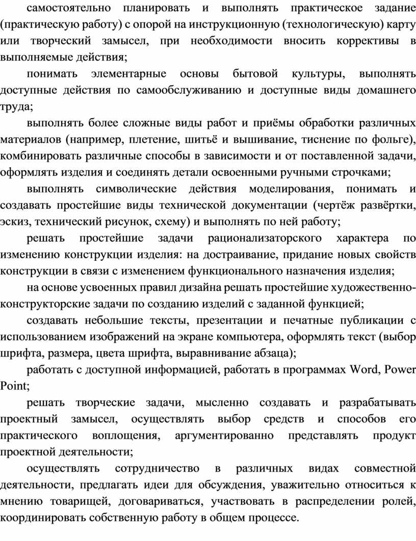 В процессе освоения программы по технологии обучающиеся овладевают основами проектной деятельности, которая направлена на развитие творческих черт личности, коммуникабельности, чувства ответственности, умения искать и использовать информацию.