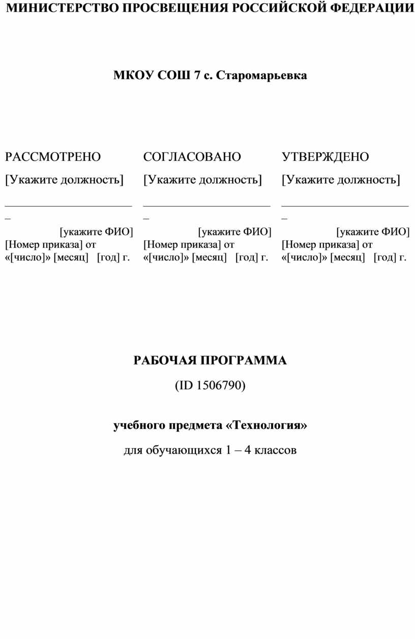 РАССМОТРЕНО [Укажите должность] ________________________ [укажите ФИО] [Номер приказа] от «[число]» [месяц] [год] г.