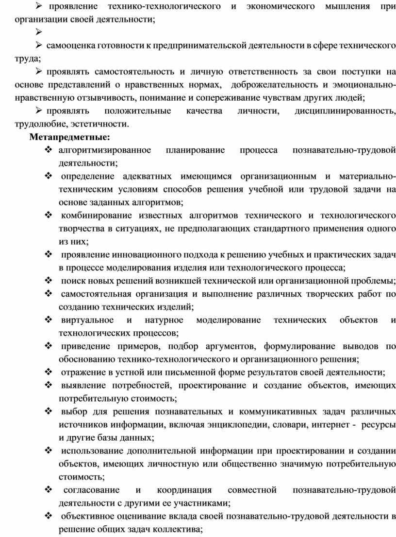 При изучении технологии в основной школе обеспечивается достижение личностных, метапредметных и предметных результатов.