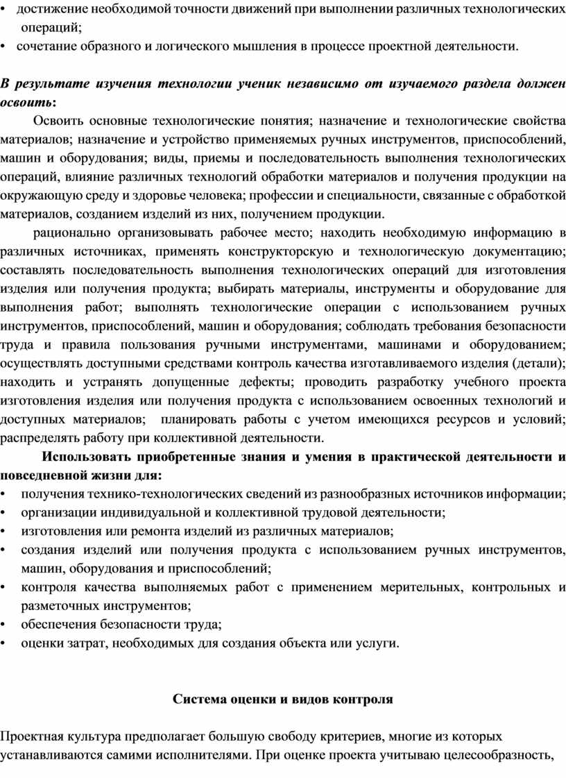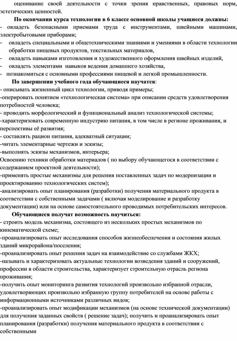 По окончании курса технологии в 6 классе основной школы учащиеся должны: