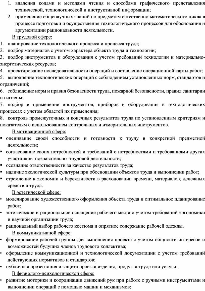 Ø проявление технико-технологического и экономического мышления при организации своей деятельности;