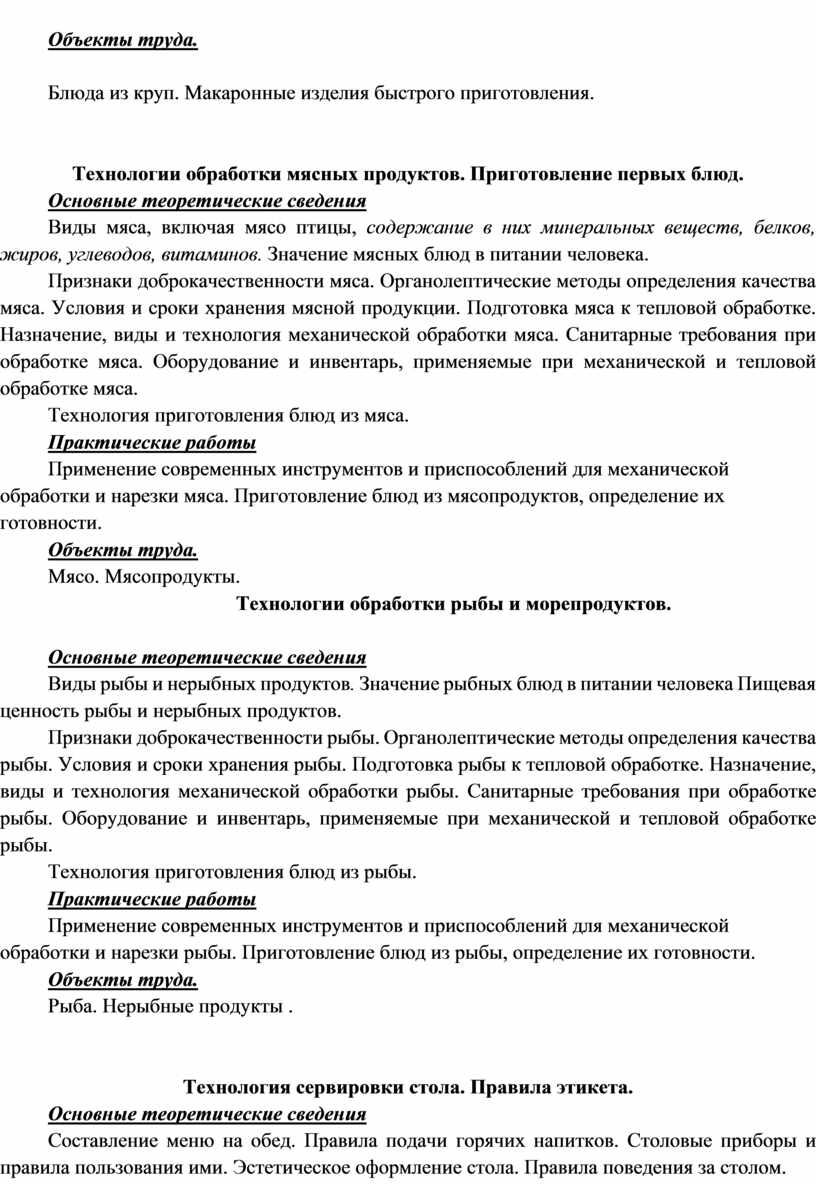 - овладеть специальными и общетехническими знаниями и умениями в области технологии обработки пищевых продуктов, текстильных материалов,