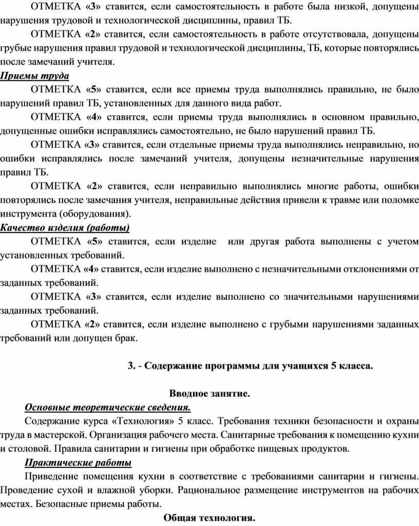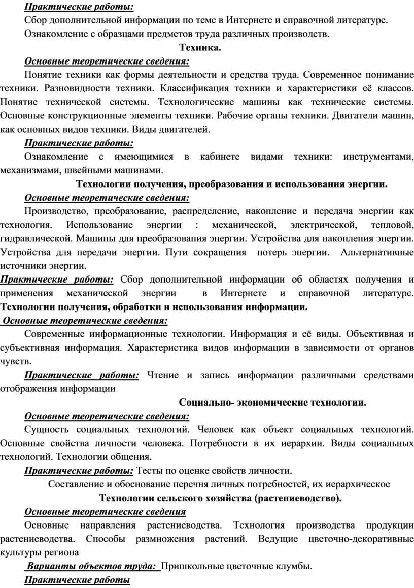 Каждый раздел программы включает в себя основные теоретические сведения, практические работы и рекомендуемые объекты труда.