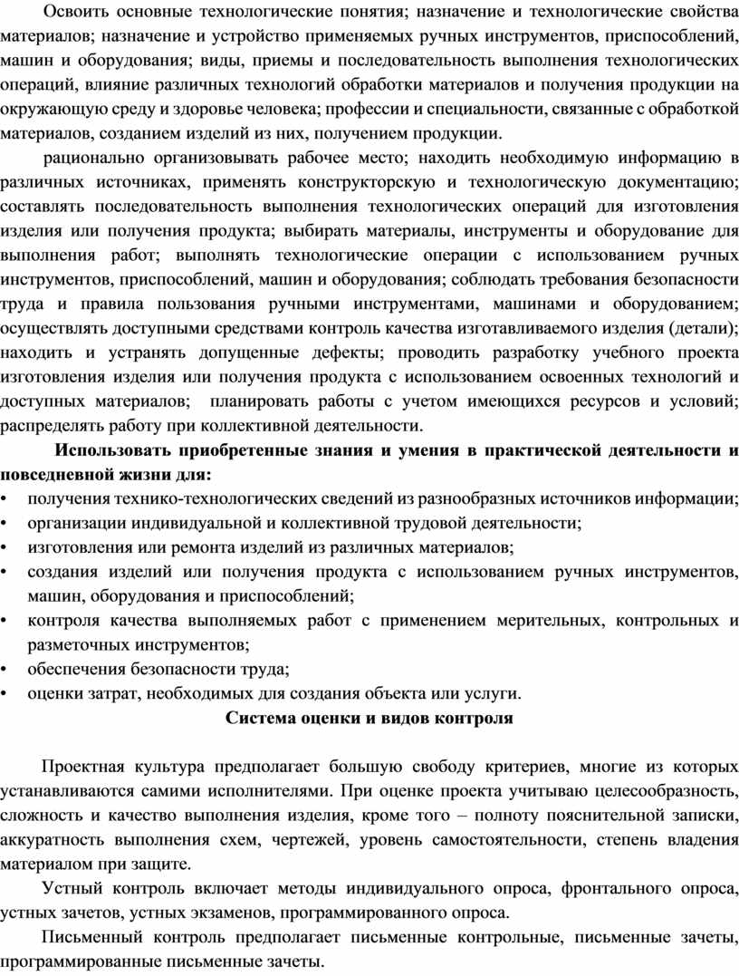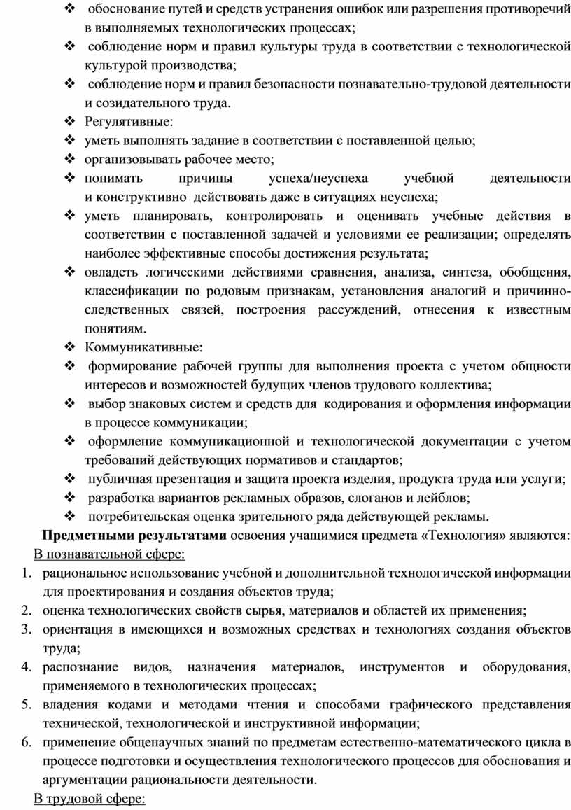 · освоение технологических знаний, основ культуры созидательного труда, представлений о технологической культуре на основе включения учащихся в разнообразные виды трудовой деятельности по созданию личностно или общественно значимых изделий;